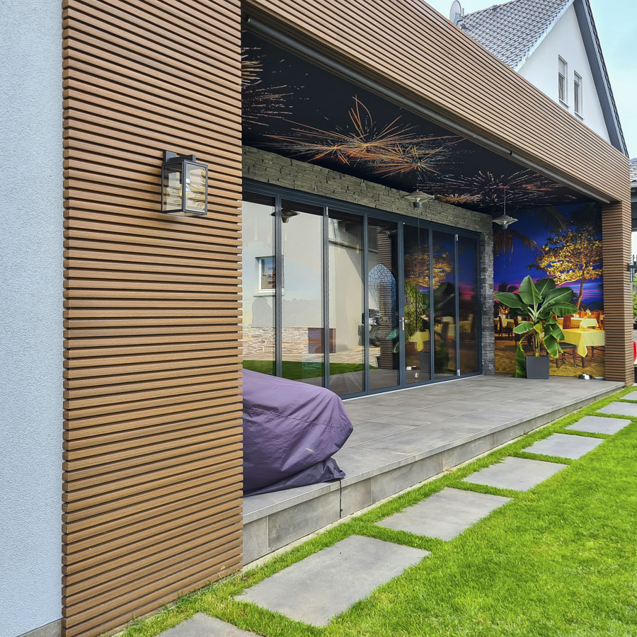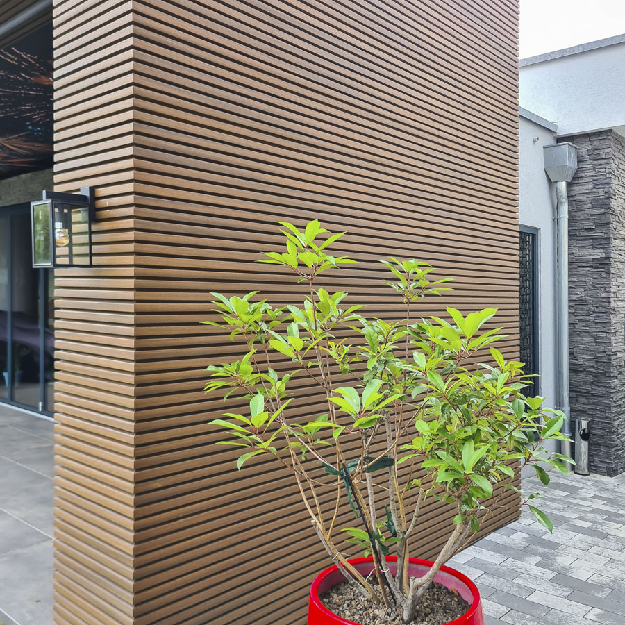 Eine Fassade mit intensiven und vier leuchtenden Farbtönen in Multicoloroptik, die garantiert nicht verblassen! Sie verleihen ihrer Fassade einen einzigartigen Charme, in drei verschiedenen Profilen. Die gebürstete, matte Oberfläche mit 20-jähriger Herstellergarantie ahmt natürliches Holz bestmöglich nach.
